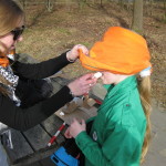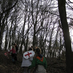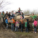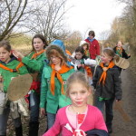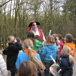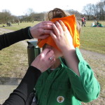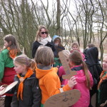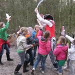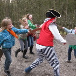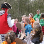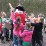 Op 25 februari was het zo ver, via een kim spel (vraag maar na) een gps route, houtje-touwtje baan, geheimschrift en lintjesparcours werd Kapitein eenoog ontdekt en onschadelijk gemaakt, anders gezegd het bos uitgeknuppeld. Voor kapitein eenoog een onprettige ervaring maar ja de gemaakte wapens moesten toch geprobeerd worden.